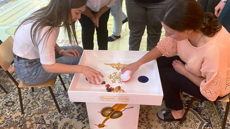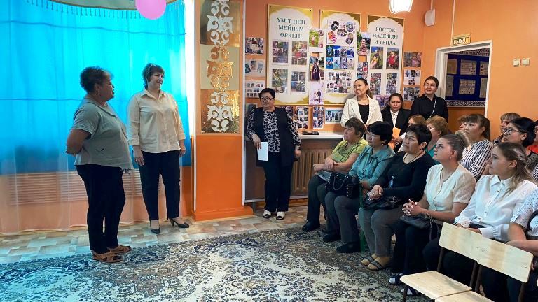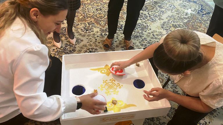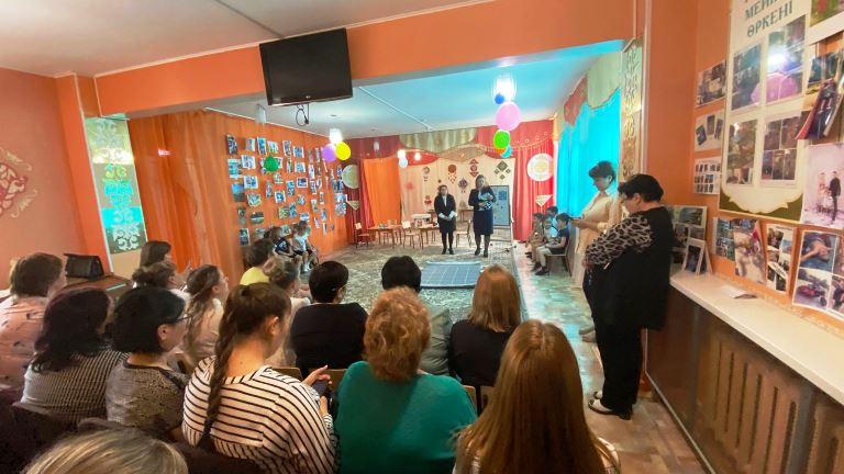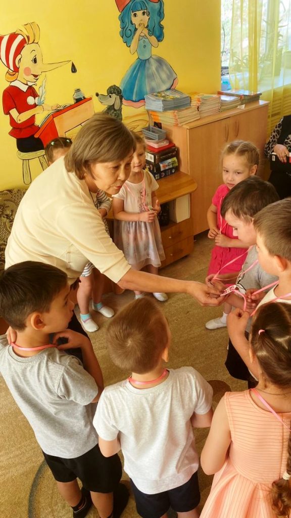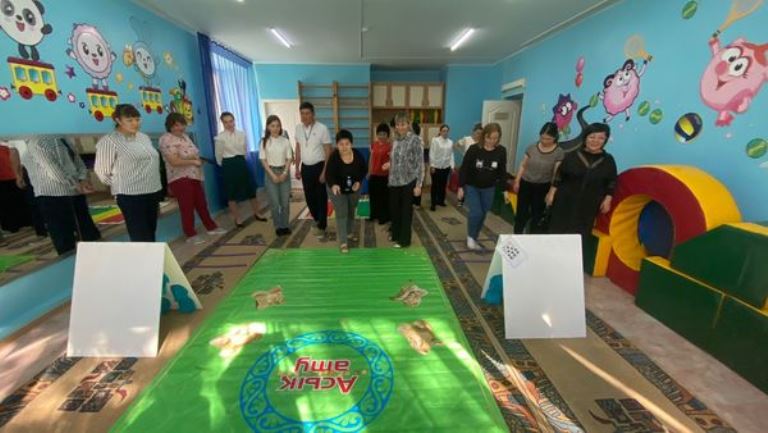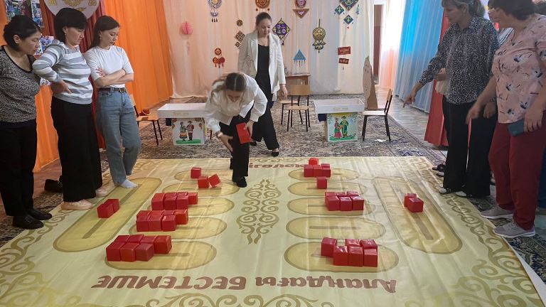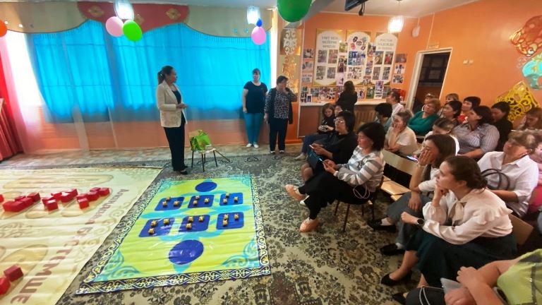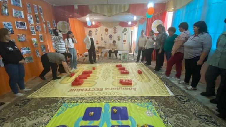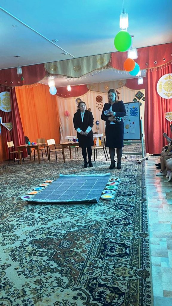 23 сентября 2024 на базе нашего детского сада прошло практическое выездное занятие для слушателей «Өрлеу» на тему «Развитие профессиональной компетентности педагога по формированию этнокультурных ценностей у детей дошкольного возраста». Педагоги ясли — сада продемонстрировали слушателям работу по реализации программы «Біртұтас тәрбие», обогащению и развитию игрового опыта детей. Представленные вниманию слушателей организованные деятельности в старшей и предшкольных группах были проведены с использованием казахских народных игр «Төр көрпе», «Асыки», «Үш отау», «Сиқырлы ою-өрнек». Слушатели с большим интересом сами поиграли в напольные и настольные игры «Мерген», «Асык ату», «Бестемше», «Бес асык», «Казан», «Үш отау», «Этно ковер» и др.